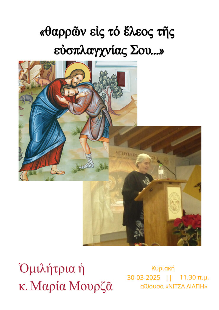 Ὁ Σύλλογός μας, σᾶς προσκαλεῖ στήν ἐκδήλωση μέ θέμα: «θαρρῶν εἰς τό ἔλεος τῆς…