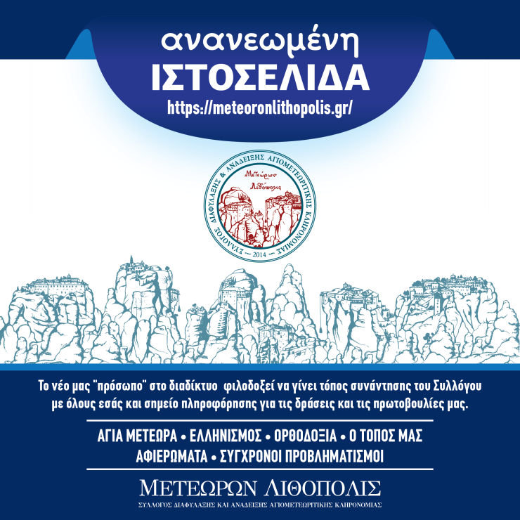 Ο Σύλλογός μας «Μετεώρων Λιθόπολις» ανακοινώνει την πραγματοποίηση ανοικτής διαδικτυακής εκδήλωσης – ομιλίας, την Κυριακή…