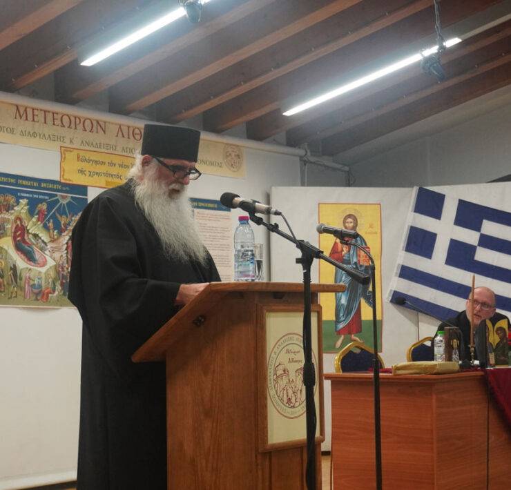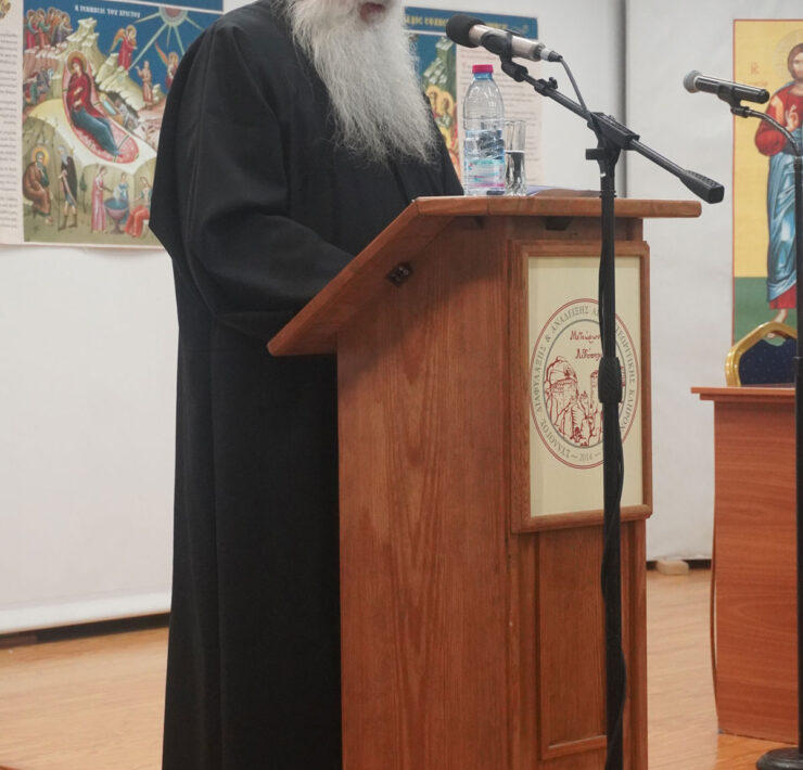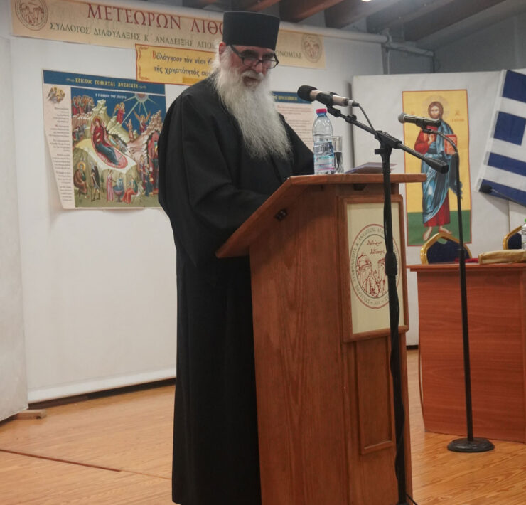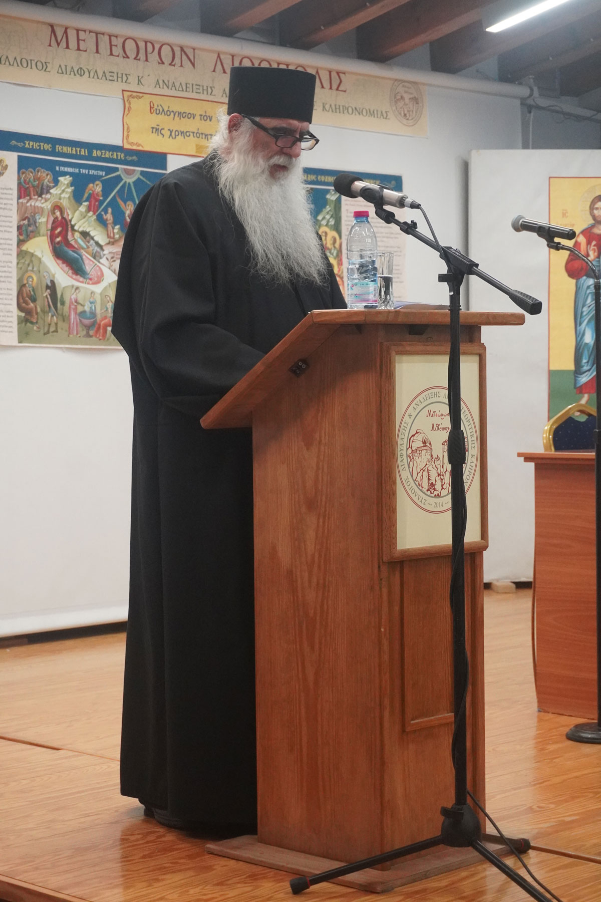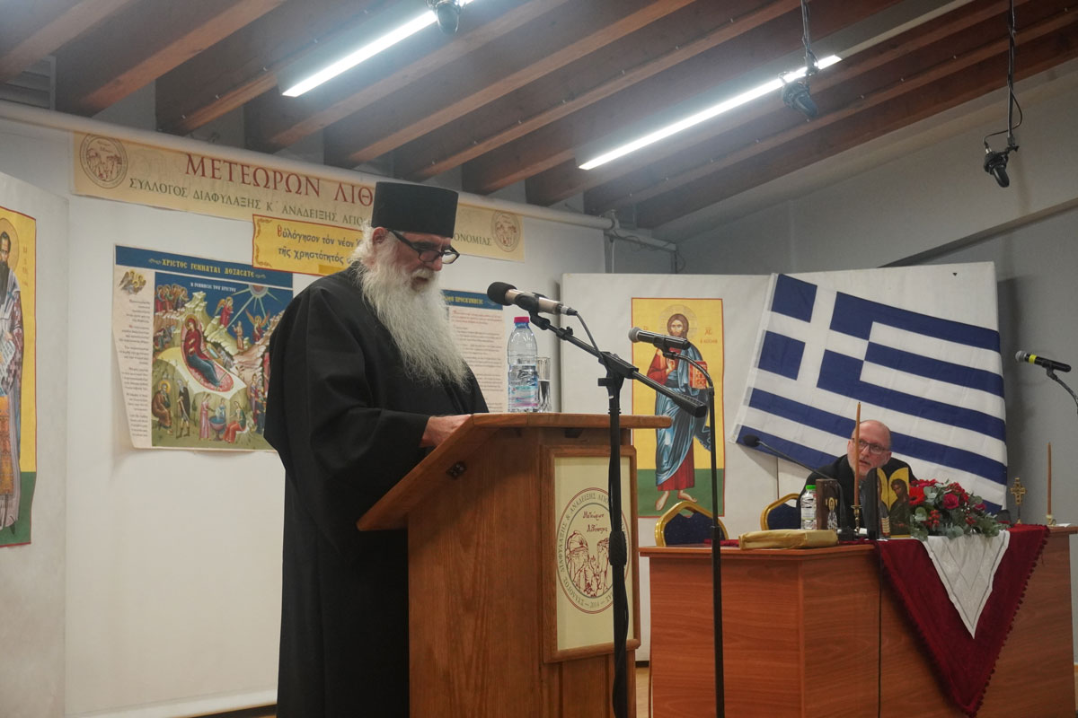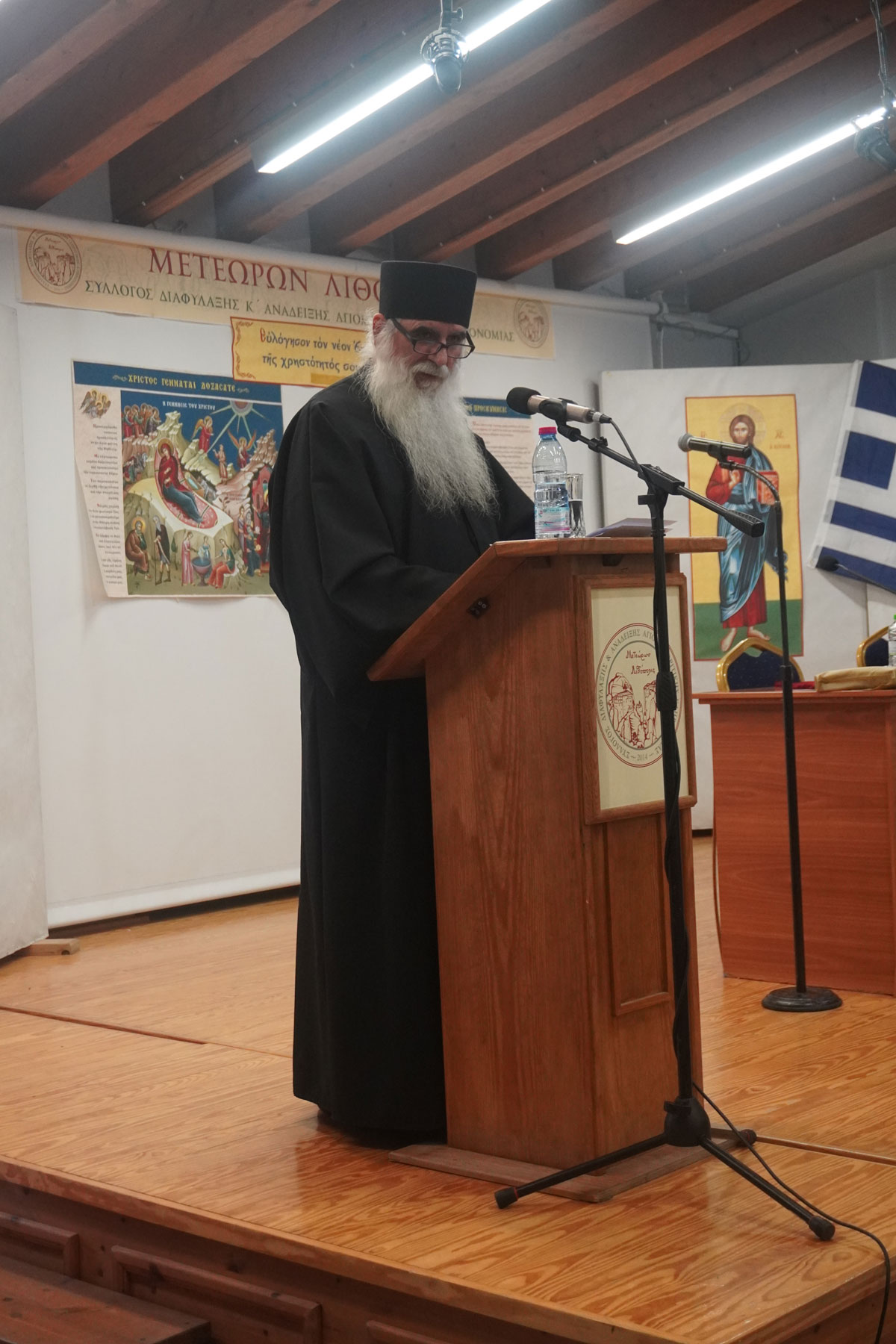 Κεντρικός ομιλητής ήταν ο Καθηγούμενος της Ιεράς Μονής Αγίας Τριάδος Μετεώρων, Αρχιμανδρίτης Δομέτιος, ο οποίος ανέπτυξε το θέμα: «Μέσα και πέρα από τον χρόνο». Στην πολύ ενδιαφέρουσα ομιλία του αναφέρθηκε στο “μυστήριο του χρόνου” ως μέγεθος και ως έννοια, όπως τον αντιλήφθηκε ή τον ερμήνευσε η επιστήμη, αλλά παράλληλα εξήγησε με ενάργεια το πώς η Ορθόδοξη Εκκλησία “διά της εμπειρίας της δίδει τη μαρτυρία ότι ο χώρος και ο χρόνος δεν είναι μόνο αναγκαίες φυσικές προϋποθέσεις υπάρξεως και ζωής αλλά έχουν το νόημά τους και ολοκληρώνονται στο πρόσωπο του Χριστού, που “ενεχρονίσθη” και “εχωρήθη” στον χωροχρόνο μας”.