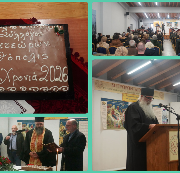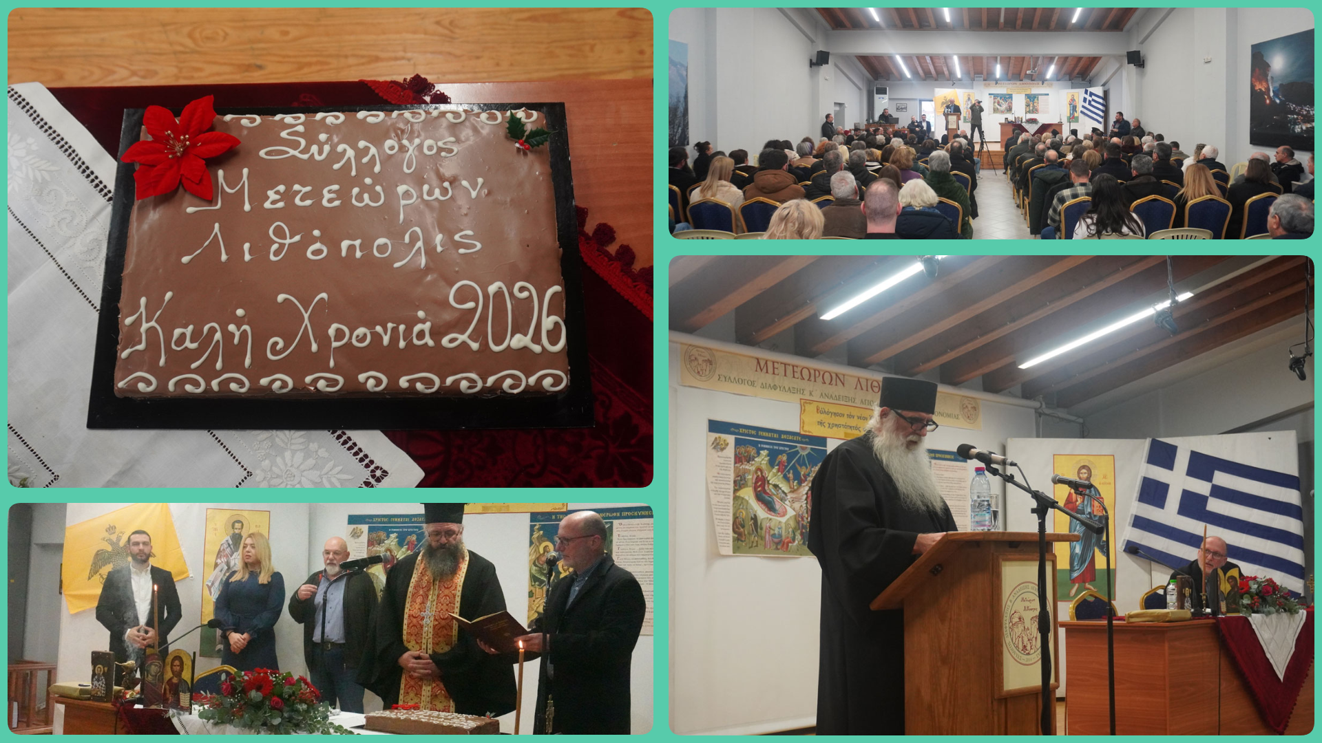 Με λαμπρότητα και πνευματική κατάνυξη πραγματοποιήθηκε την Κυριακή 11 Ιανουαρίου 2026 η καθιερωμένη εκδήλωση κοπής της Αγιοβασιλόπιτας του Συλλόγου Διαφύλαξης και Ανάδειξης της Αγιομετεωρίτικης Κληρονομιάς «Μετεώρων Λιθόπολις», στην κατάμεστη αίθουσα «Νίτσα Λιάπη» στην Καλαμπάκα.