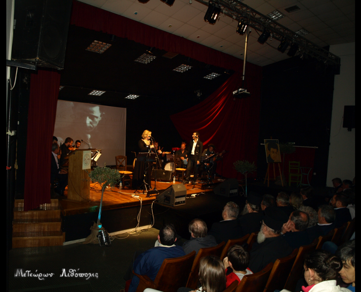 Θερμά συγχαρητήρια οφείλουμε σε όλους τους συντελεστές της εκδήλωσης. Σ ‘όλους όσους κοπίασαν για να παρουσιάσουν ένα ανεπανάληπτο αφιέρωμα (μουσικό και μη) και κυρίως στους τραγουδιστές μας, Ζαχαρία Καρούνη και Κωνσταντία Λάσκου, τους μουσικούς Αδάμο Γιώργο, Ντίνα Γιώργο, Παπαγεωργίου Νεκτάριο, Παπαϊωάννου Κωνσταντίνο, Σακκά Αποστόλη, Σούλτη Γιάννη, Κώστα Δριτσέλη και τον εξαιρετικό αφηγητή Δημήτρη Τσιαντούλα.