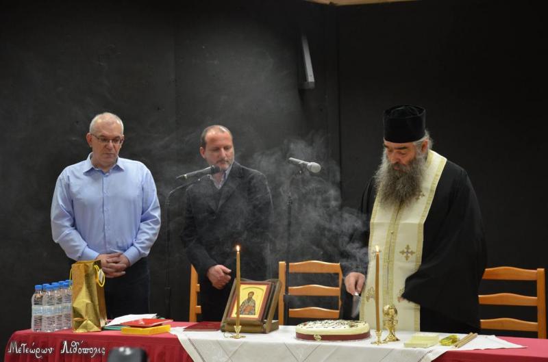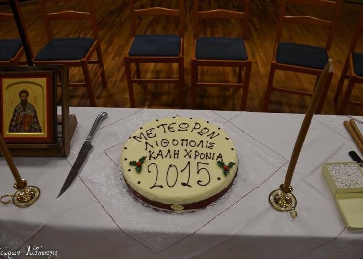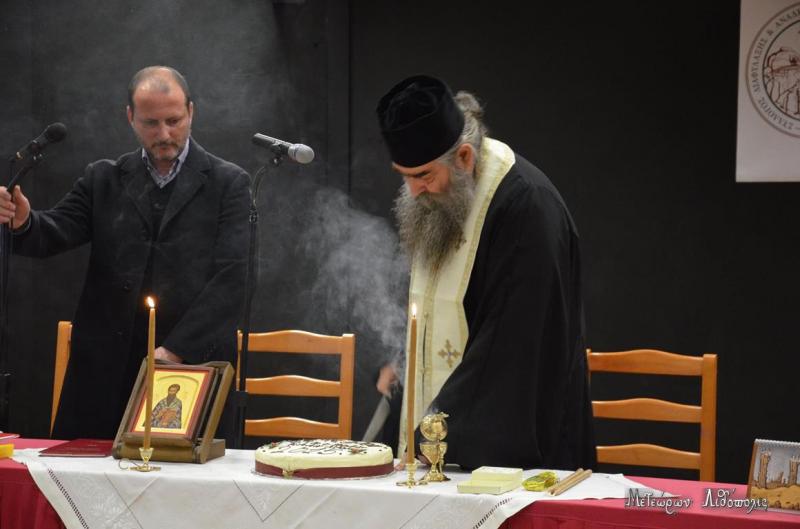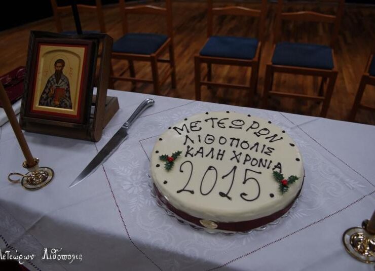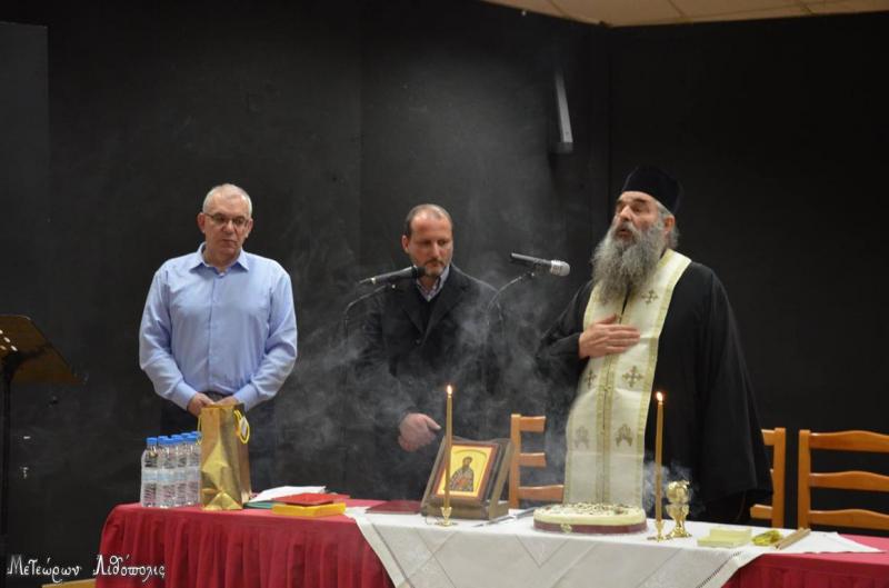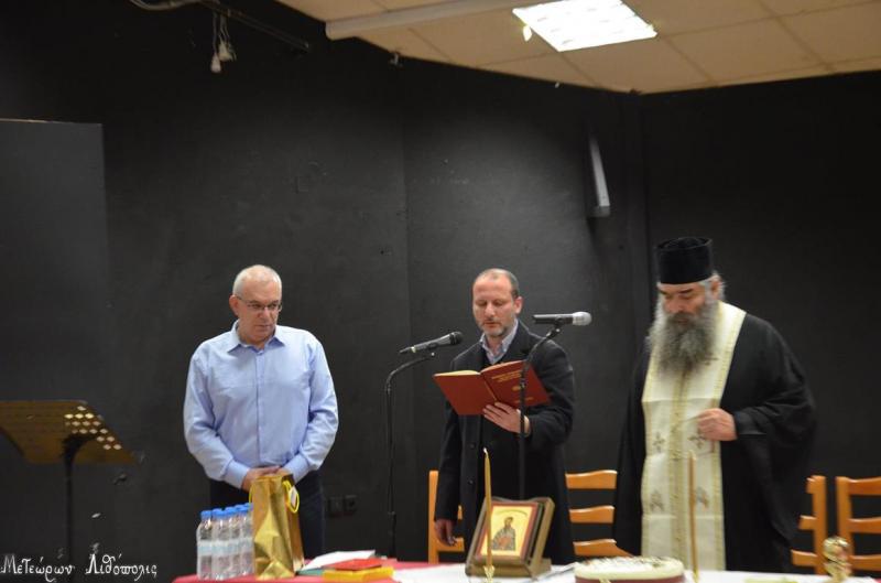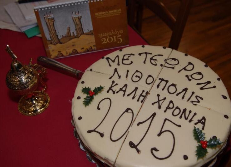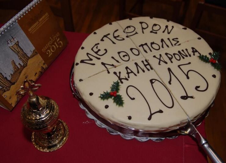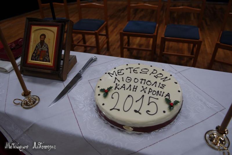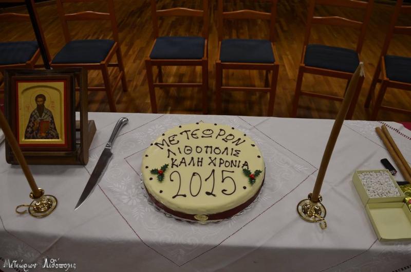 Η ακολουθία του αγιασμού για την κοπή της βασιλόπιτας τελέσθηκε από τον πανοσιολογιώτατο Αρχιμανδρίτη π. Αθανάσιο προηγούμενο της Ιεράς Μονής Μεγάλου Μετεώρου, ο οποίος στη συνέχεια ανέγνωσε ψυχωφελή αποσπάσματα από το βιβλίο της εκλεκτής συγγραφέως Μαρίας Μουρζά, που φέρει τον τίτλο «Αντίδωρο», ευλογώντας με αγιοπνευματικά αναγνώσματα την έναρξη της νέας αυτής χρονιάς.