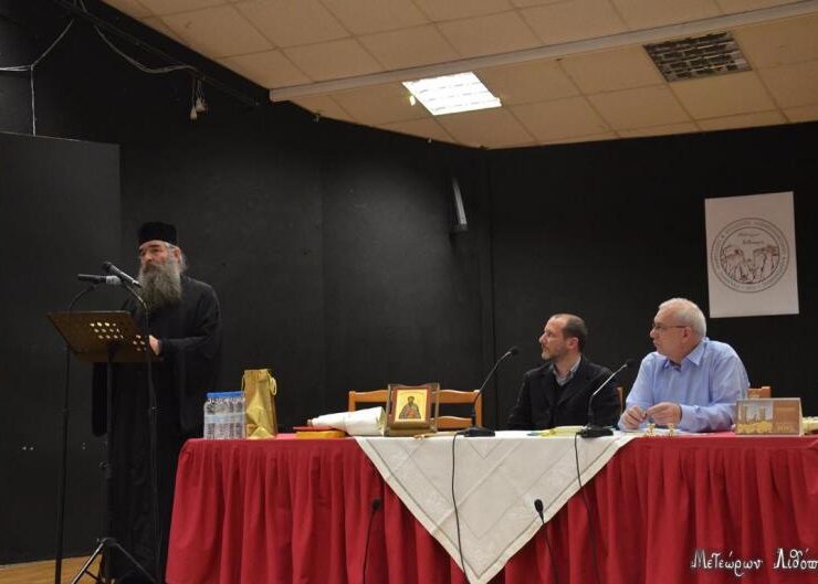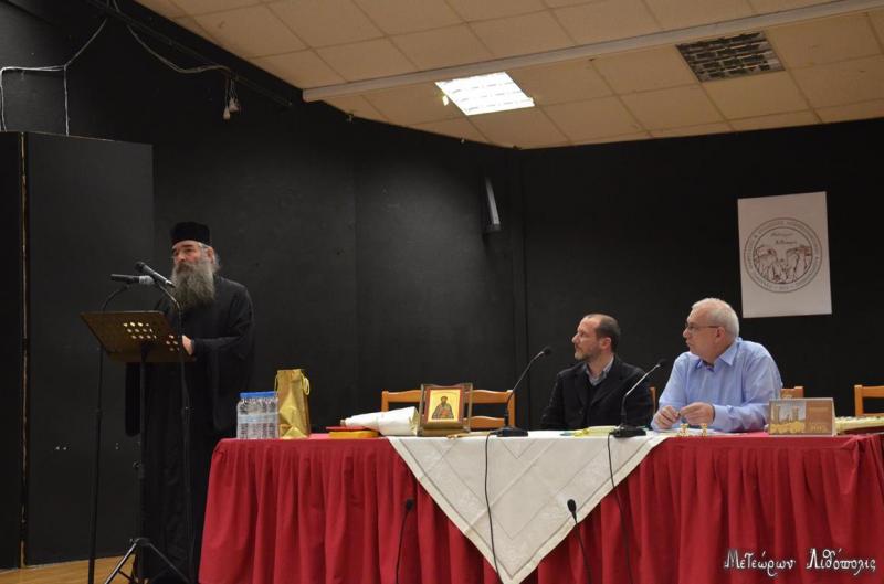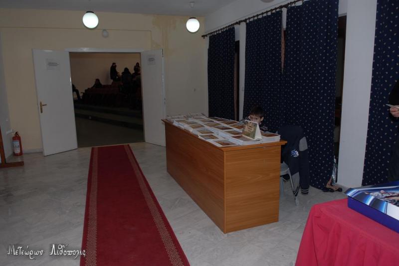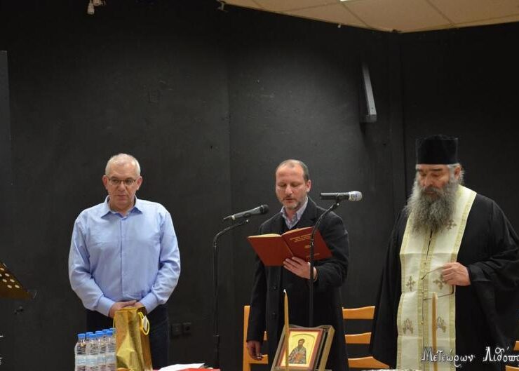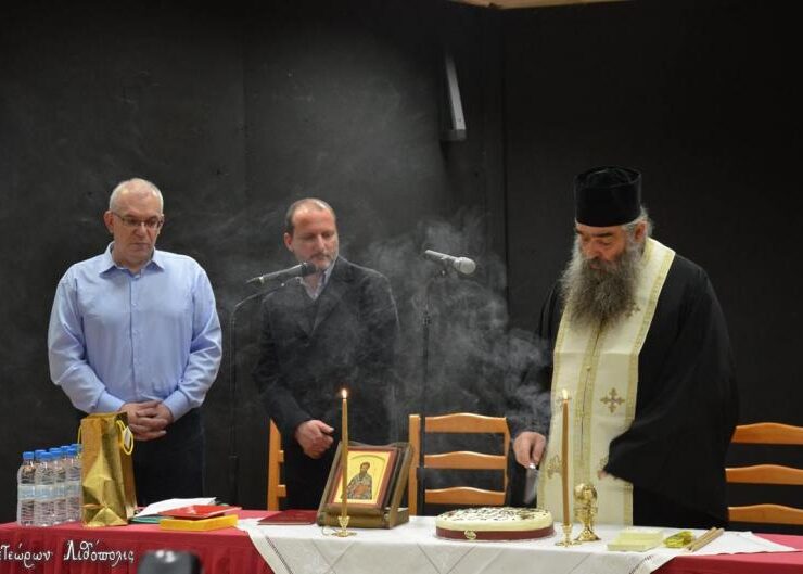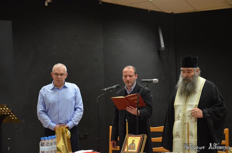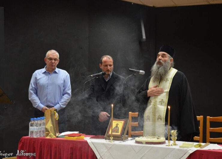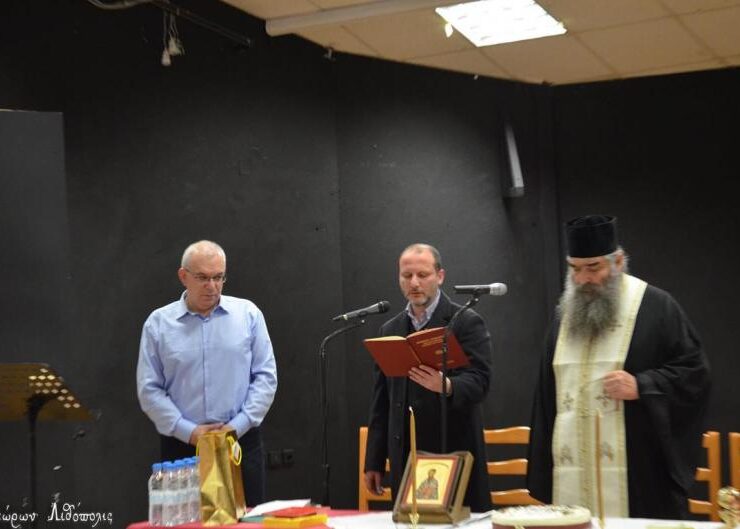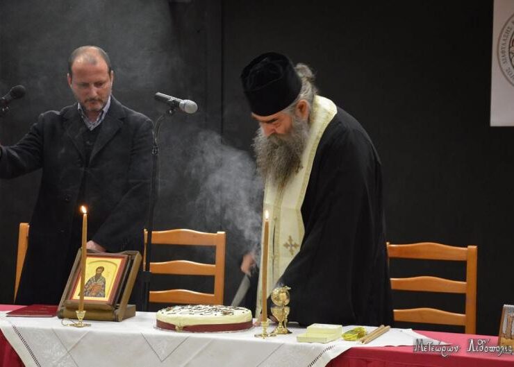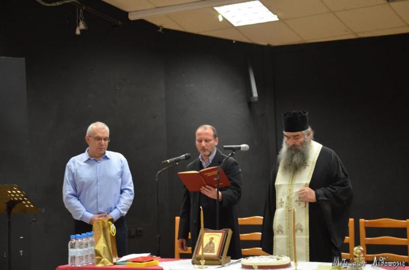 Η ακολουθία του αγιασμού για την κοπή της βασιλόπιτας τελέσθηκε από τον πανοσιολογιώτατο Αρχιμανδρίτη π. Αθανάσιο προηγούμενο της Ιεράς Μονής Μεγάλου Μετεώρου, ο οποίος στη συνέχεια ανέγνωσε ψυχωφελή αποσπάσματα από το βιβλίο της εκλεκτής συγγραφέως Μαρίας Μουρζά, που φέρει τον τίτλο «Αντίδωρο», ευλογώντας με αγιοπνευματικά αναγνώσματα την έναρξη της νέας αυτής χρονιάς.