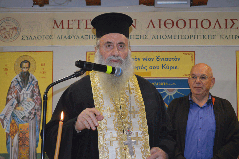 Την Βασιλόπιτα, εκπροσωπώντας και της Ιερά μας Μητρόπολη, ευλόγησαν οι πρωτοπρεσβύτεροι π. Ευάγγελος Γκιουζέλης και π. Δημήτριος Σπυρόπουλος, οι οποίοι απευθύνθηκαν στο ακροατήριο εκφράζοντας τις ευχές του Σεβασμιωτάτου για μια ευλογημένη και καρποφόρα χρονιά, με ευόδωση των στόχων και σκοπών του Συλλόγου.