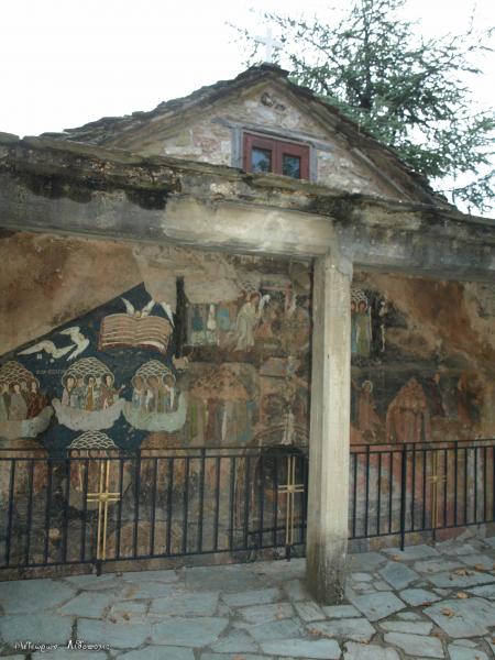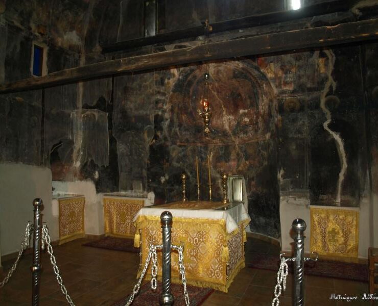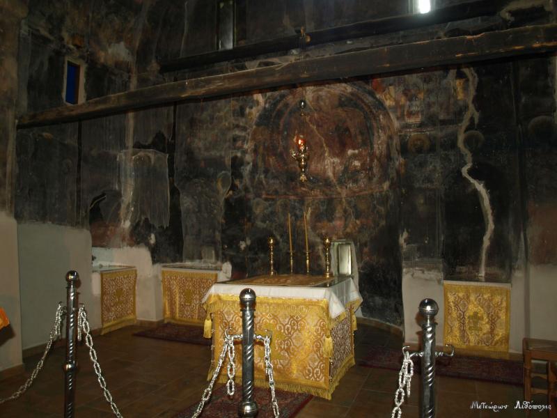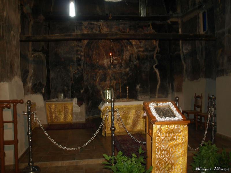 Δεξιά από το παράθυρο της κόγχης του ιερού είναι εντοιχισμένη πέτρα με χαραγμένη την χρονολογία 1709 ενώ πάνω από την νότια είσοδο είναι χαραγμένη σε πέτρα η επιγραφή : «Παήσιως Σταγον επ(πίσκοπος) / κήρηος Ηανάκις / πήτροποσς του μαναστη/ρήου (η)γούμενος Διονή(σιος) / Μ. Χαρίσης Γιαννάκι / (Α) θ(α)ν(α)ς(ιο)ς Στοραφ.1784».
