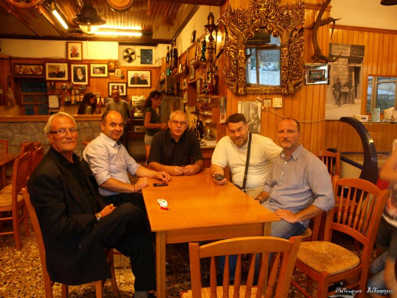 Συνοδευόμενοι από τον επί σειρά ετών κοινοτάρχη Τάκη Καταραχιά, μεταβήκαμε για το καθιερωμένο για τους Κουστουφλιανιώτες κέρασμα στο παραδοσιακό καφενείο του αείμνηστου Άγγελου Πάλλα, η παρουσία του οποίου είναι έντονη παρά το ότι εκείνος αναχώρησε από την γήινη φθαρτότητα.