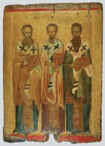 Τούς τρεῖς μεγίστους φωστῆρας τῆς Τρισηλίου θεότητος,
