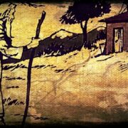 Είναι ένα μαντρί πίσω από μία ραχούλα, κοντά στη θάλασσα, φυτρωμένη από πουρνάρια. Αυτό το μαντρί είναι του Γιάννη του Βλογημένου. Τα πρόβατα είναι σταλιασμένα κάτω από τη σαγιά και ακούγουνται τα κουδούνια, τιν-τιν, όπως αναχαράζουνε. Επειδή γεννάνε, οι τσομπαναραίοι παρα-φυλάγουνε και, μόλις γεννηθεί κανένα αρνί, τ᾿ αρπάνε και το μπάζουνε στο καλύβι και το ζεσταίνουνε στη φωτιά να μην παγώσει. Απ᾿ όξω φωνάζουνε οι μαννάδες. Η φωτιά ξελοχίζει και το καλύβι είναι σαν χαμάμι.