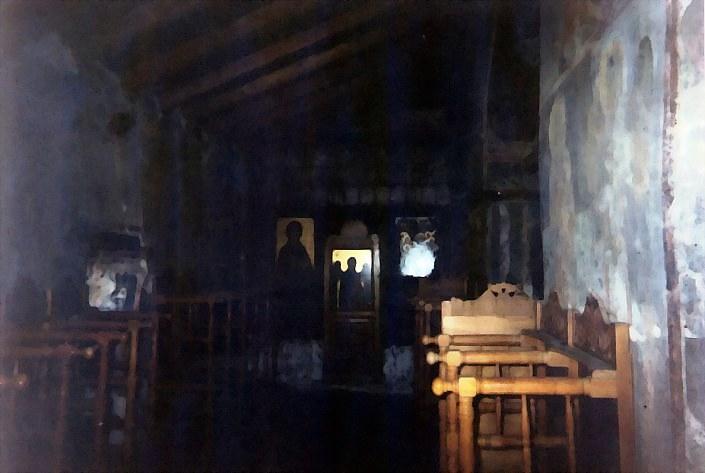 Η σκεπή ξεχαρβαλωμένη, αφήνοντας τα νερά της βροχής να τρέχουν, τα τζάμια των φεγγιτών σπασμένα, οι κατά καιρούς παρεμβάσεις καταστροφικές, τα μαδέρια σαπισμένα και φαγωμένα από το σαράκι, ο ναός καταφύγιο κάθε είδους ερπετού με τα περιττώματά τους να είναι εμφανή ακόμα και πάνω στην Αγία Τράπεζα.