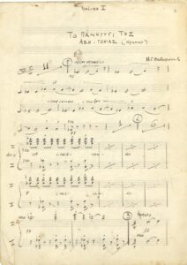 Έχω φυλάξει την παρτιτούρα με τις σημειώσεις του Δασκάλου μου με μπλε και κόκκινο μολύβι. Μείναμε ως αργά το απόγευμα. Έτσι -ω του θαύματος- την άλλη μέρα όλα αλλάζουν. Οι μελωδίες, οι ρυθμοί, οι αρμονίες δένουν μεταξύ τους σχηματίζοντας έναν άγνωστο, έναν καινούριο ηχητικό κόσμο… Αναπνέω… Νιώθω ότι νίκησα… ποιον άλλον; …τον ίδιο τον εαυτό μου, αναγκάζοντάς τον με τη μελέτη και την άσκηση να αποτυπώνει σωστά τους ήχους πάνω στο χαρτί, χωρίς τη μεσολάβηση μουσικού οργάνου…